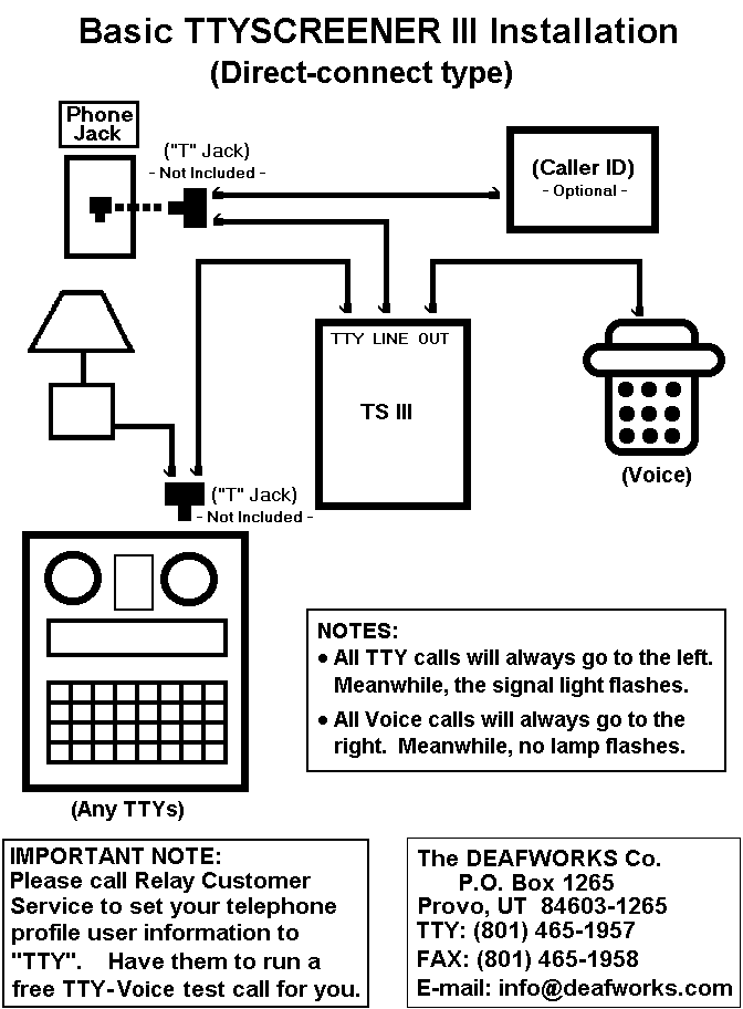 Click here to go back to Main Click here for ordering a free Catalog Click here for ordering a product via Online Click here to contact us DEAFWORKS Individual Products Click here for a self-help guide about TTYSCREENER family Click here to learn about TTYSCREENER family Click here for TTYSCREENER III (to refresh this page)